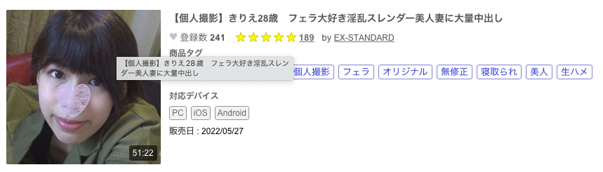这是5月底时由卖家「EX-STANDARD」于FC2网站贩售、番号为FC2-PPV-2411858的无码片,从标题「【个人撮影】きりえ28歳 フェラ大好き淫乱スレンダー美人妻に大量中出し」就知道这位名为きりえ的28岁人妻身材苗条纤细是个让人想给她老公戴绿帽的美人,然后上了床她会像感染丧尸病毒一样狂暴化,不但会露出淫乱的阿嘿颜还会配合你任何过份的要求,所以这位卖家不客气了,把最浓的一发大龙炮全部灌浆进了她的体内⋯