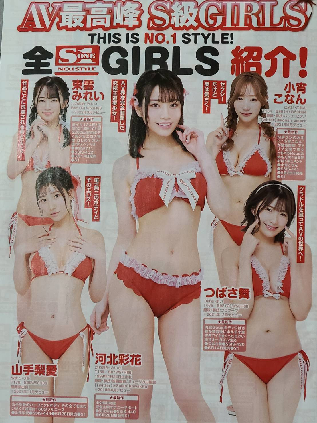 上次介绍S1的促销活动时就有人为葵つかさ(葵司)抱不平,认为S1没有把她的位置放对,忽视她了,但从这次配图的安排你就知道S1完全没搞错,就是小仓七海太强了ー如果你还不知道S1有多喜欢小仓七海,那容我再告诉你一件事,那就是这次杂志不只这四页介绍S1的女优而且还有送海报的,海报的正面是河北彩花,而背面呢,不是三上悠亜,而是小仓七海〜