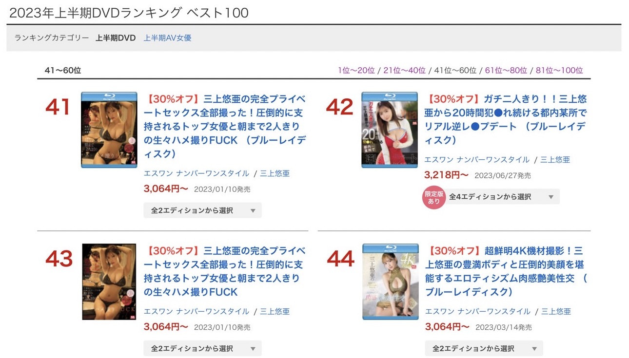 FANZA上半年度销售排行公布!三上悠亜引退企划大获全胜,但有一支作品落队了