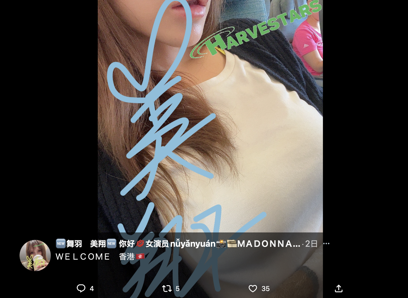 这种就是夜路走多了会碰到鬼,有管道的朋友想必对「舞羽美翔」这名字不陌生,不只是在香港,之前她也有来到台湾做一样的事,不但在社群上表明自己人就在台湾甚至还因为有人爆料她在卖而嘴了回去;而我刚刚翻了X(twitter),发现她两天前就发文说自己到了香港,所以我想报导应该没有误会,她就是那四位日籍女子中的一人: